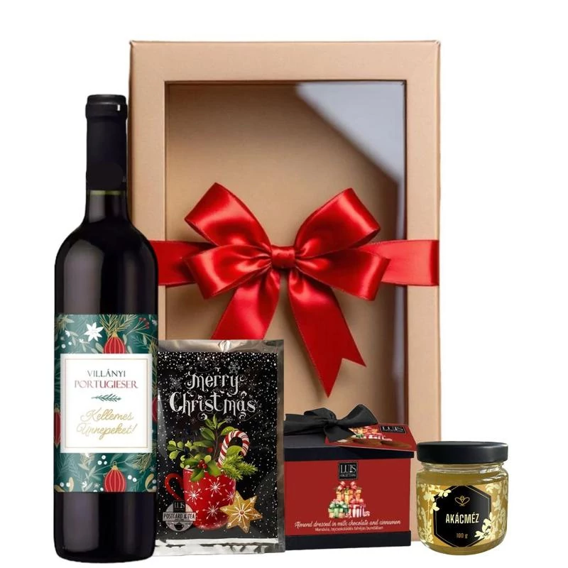 Megtalálta a tökéletes megoldást az évvégi ajándékozáshoz céges karácsonyi ajándékcsomagunkkal, mely garantáltan maradandó élményt nyújt partnereinek és kollégáinak! A gondosan összeállított válogatás a prémium minőségű hazai bort ötvözi elegáns kiegészítőkkel, így méltóképpen fejezheti ki háláját és elismerését az ünnepek alkalmából. Tegye az összeállítást egyedivé saját logójával, személyes üzenettel!